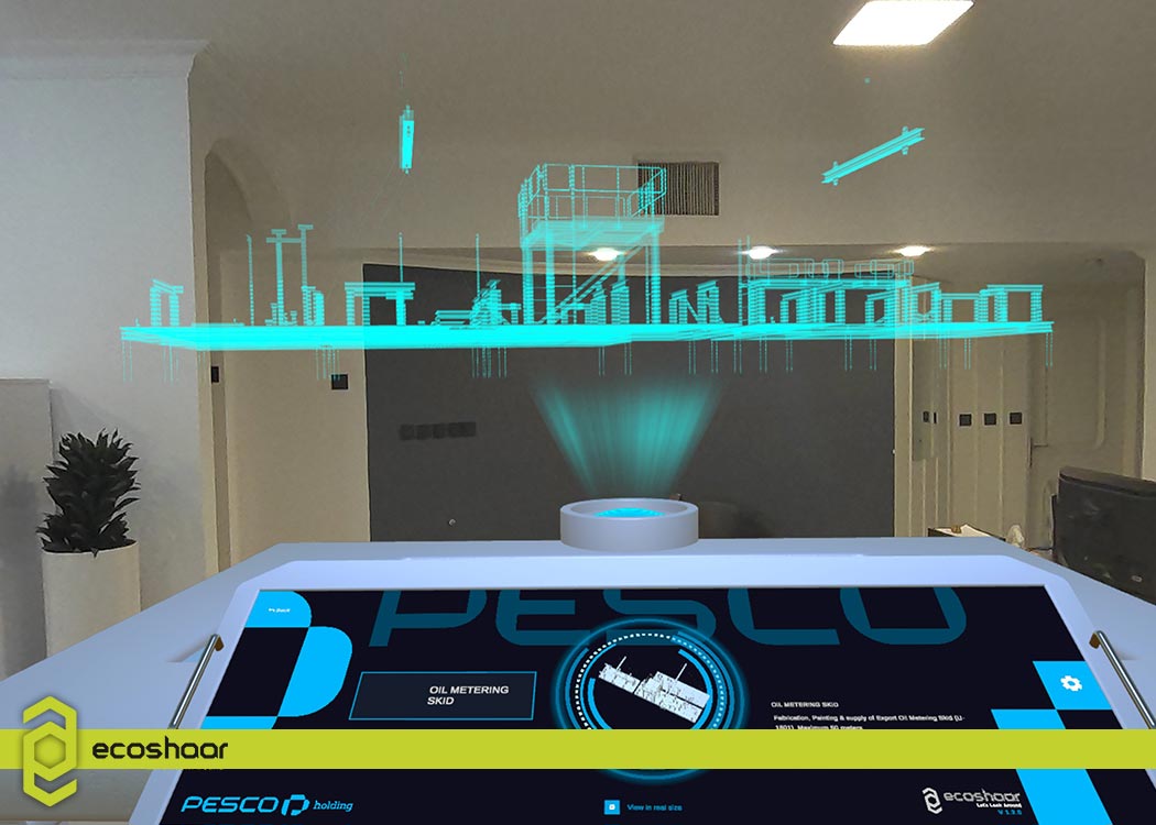 فعالیت بینالمللی اکوشار با همکاری با شرکت بینالمللی PESCO Holding در دبی آغاز شد؛ شرکتی فعال در حوزههای صنعت نفت و گاز، نیروگاهها و زیرساختها، که به دنبال راهکاری نوآورانه برای معرفی محصولات خود در بازار جهانی بود. نتیجه این همکاری، توسعه اپلیکیشن واقعیت ترکیبی PESCO MR بود؛ پروژهای نوآورانه و بینالمللی در حوزه نمایش محصولات صنعتی.